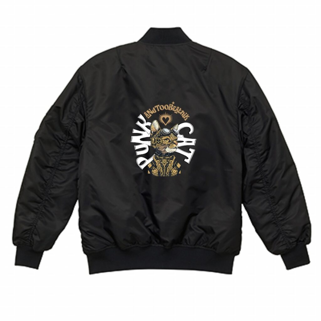 2025.10.27 アウター PUNK CAT MA-1ジャケット andtoobwp パンク猫(パンキャット) のクールなイラストがバックプリントされた最高にクールなMA-1です。このスタイリッシュなMA-1を着て街に出てください!機能性抜群で中綿入りで保温性も抜群!秋冬にぴったりなMA-1ジャケットです。 ¥14,800(税込) COLOR : オリーブドラブ | ブラック SIZE : S~XL 公式オンラインショップで販売中! オリーブドラブ ブラック 公式オンラインショップで手に入れよう! #PUNK CAT andTooBとは andTooB-JAPANORIJINal T-shirTXInstagramオリジナルTシャツのandTooB/アンドトゥビーです ご購入は公式オンラインショップとAmazonで This is "andTooB", an online shop. We sell ORIJINaL T-shirT. You can buy it on amazon.com